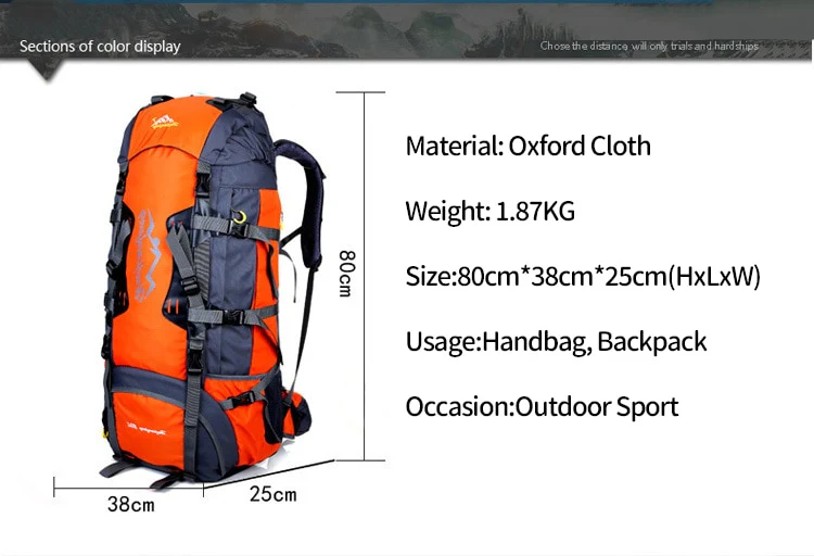 Features of the HU WAI JIAN FENG 80 Litre Rucksack