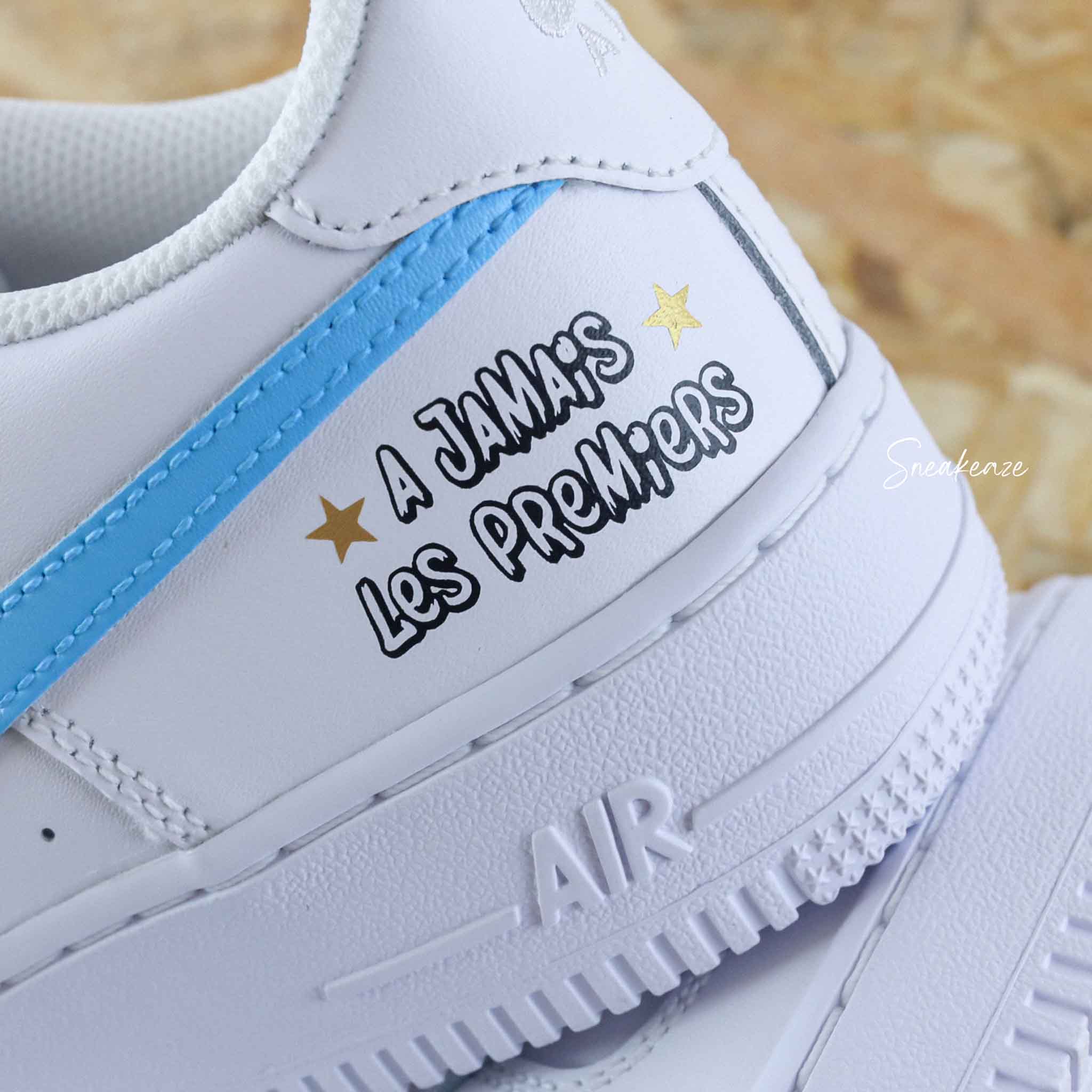 Baskets Nike Air Force 1 custom – A jamais les premiers Marseille. Je souhaite ajouter un prénom à mon custom Modèle fait-main dans notre atelier, peinture waterproof. Le tarif comprend la paire ainsi que la customisation.