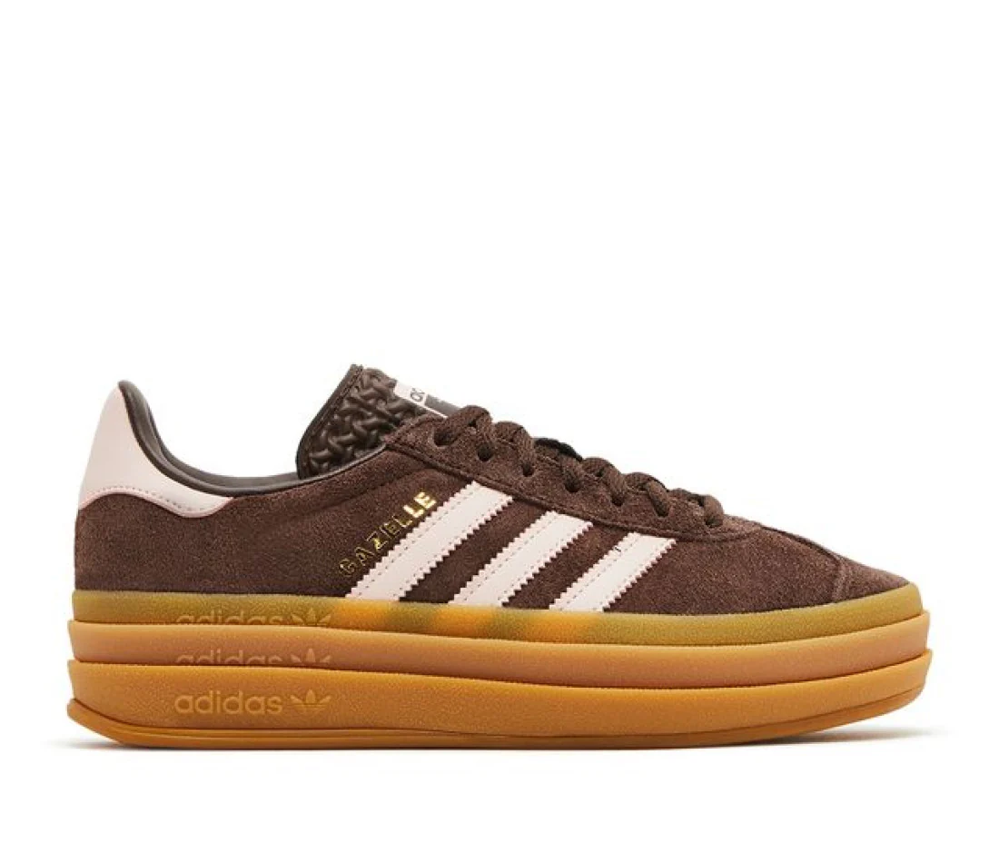 La adidas Gazelle Bold “Icey Pink / Auburn” revisite la silhouette iconique Gazelle en version Bold, avec une plateforme structurée et une palette audacieuse. L’empeigne en suède premium associe un auburn café profond à des touches rose pastel Icey Pink sur les 3-Stripes et les panneaux latéraux, le tout reposant sur une semelle gum triple couche qui accentue le caractère mode du modèle.