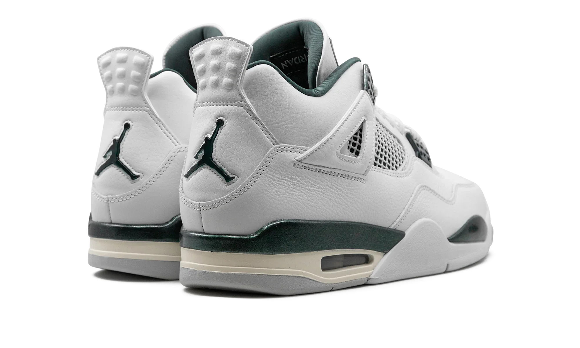 Les touches Neutral Grey viennent équilibrer la palette, renforçant la sobriété de la construction tout en rappelant certains des coloris historiques de la ligne. Ce jeu de nuances entre le blanc immaculé, le vert profond et le gris neutre donne à la paire une identité visuelle forte, à la fois moderne et fidèle à l’héritage de la Air Jordan 4.