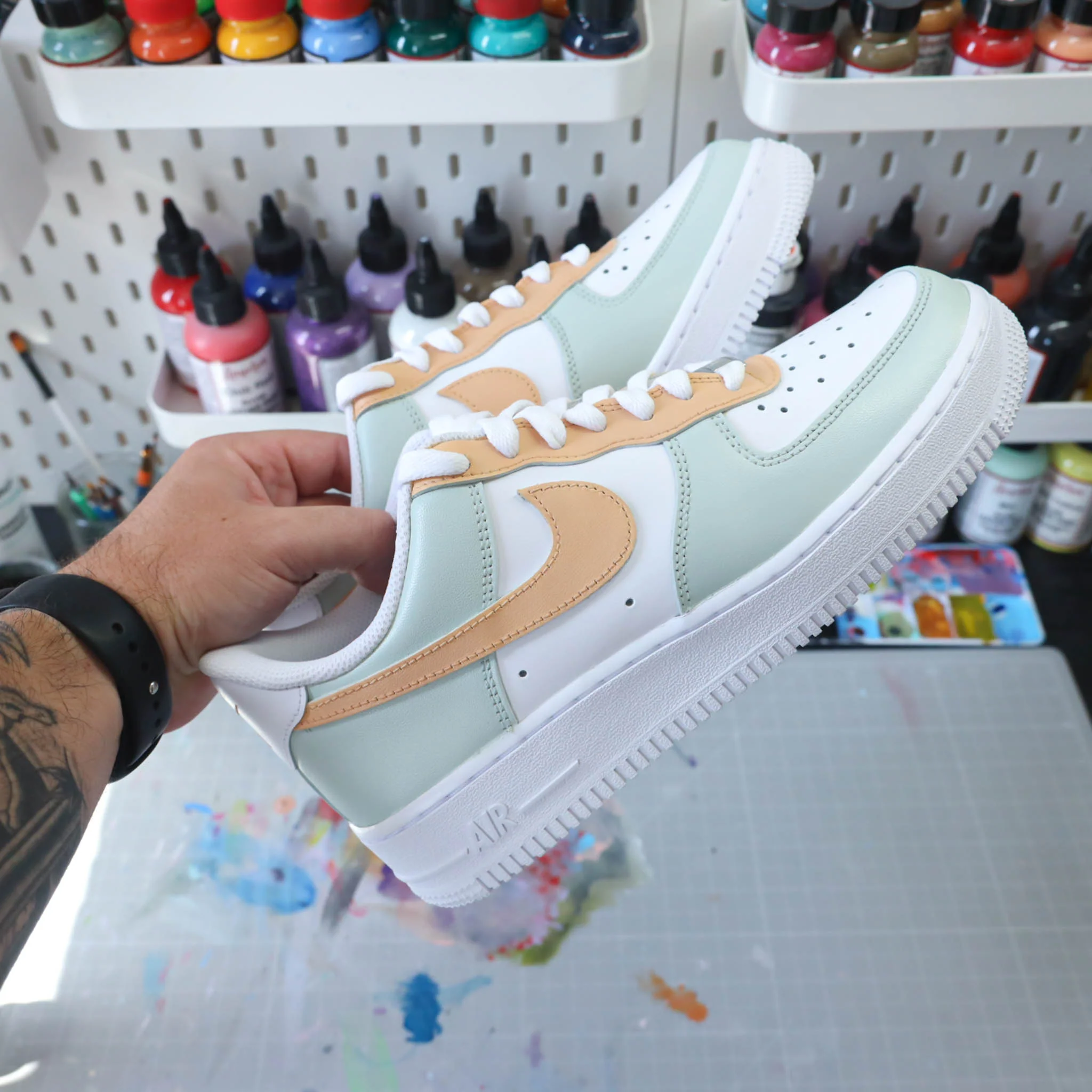 Baskets Nike Air Force 1 custom couleur amande et abricot