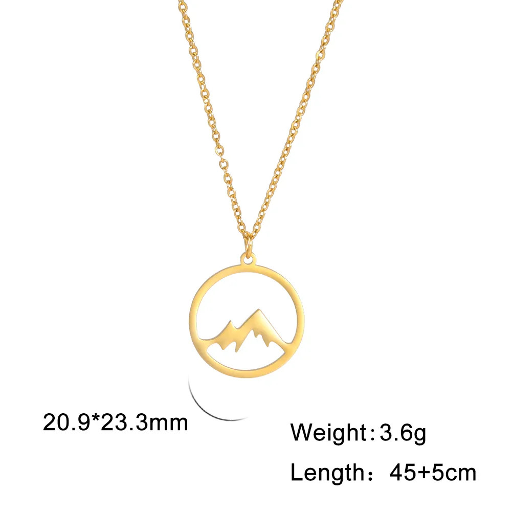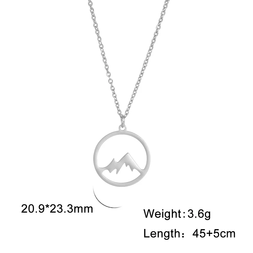 Amaxer Women Men’s Necklace Round Mountain Range Pendant Simple Stainless Steel Pendant Delicate Vintage Chain Fashion Jewelry