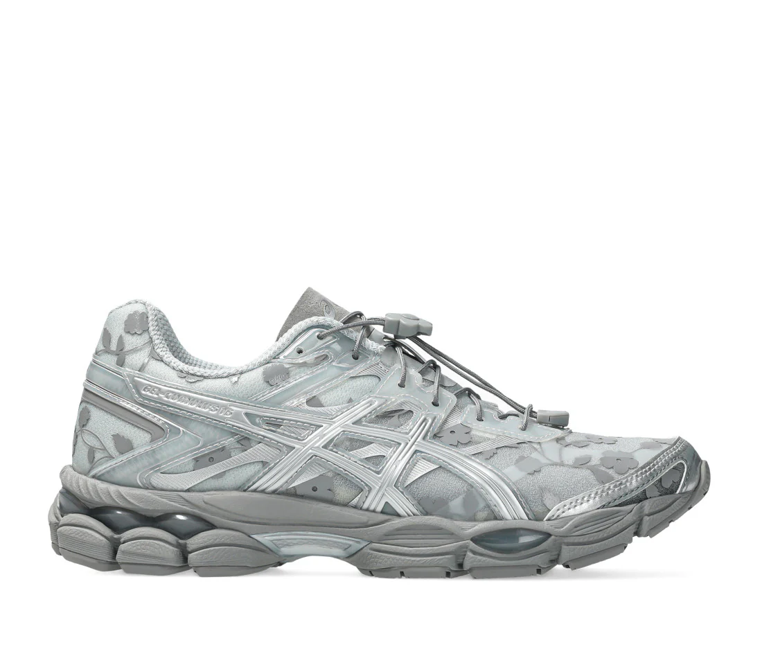 La ASICS Gel‑Cumulus 16 “Cecilie Bahnsen Floral Pack” incarne la première collaboration de la nouvelle série Signature Series d’ASICS, signée par la créatrice danoise Cecilie Bahnsen. Sortie le 11 juillet 2025, elle marie l’esthétique raffinée de la couture à motifs floraux sur une base technique en mesh Glacier Grey rehaussée d’overlays transparents argentés mat et brillants en TPU.