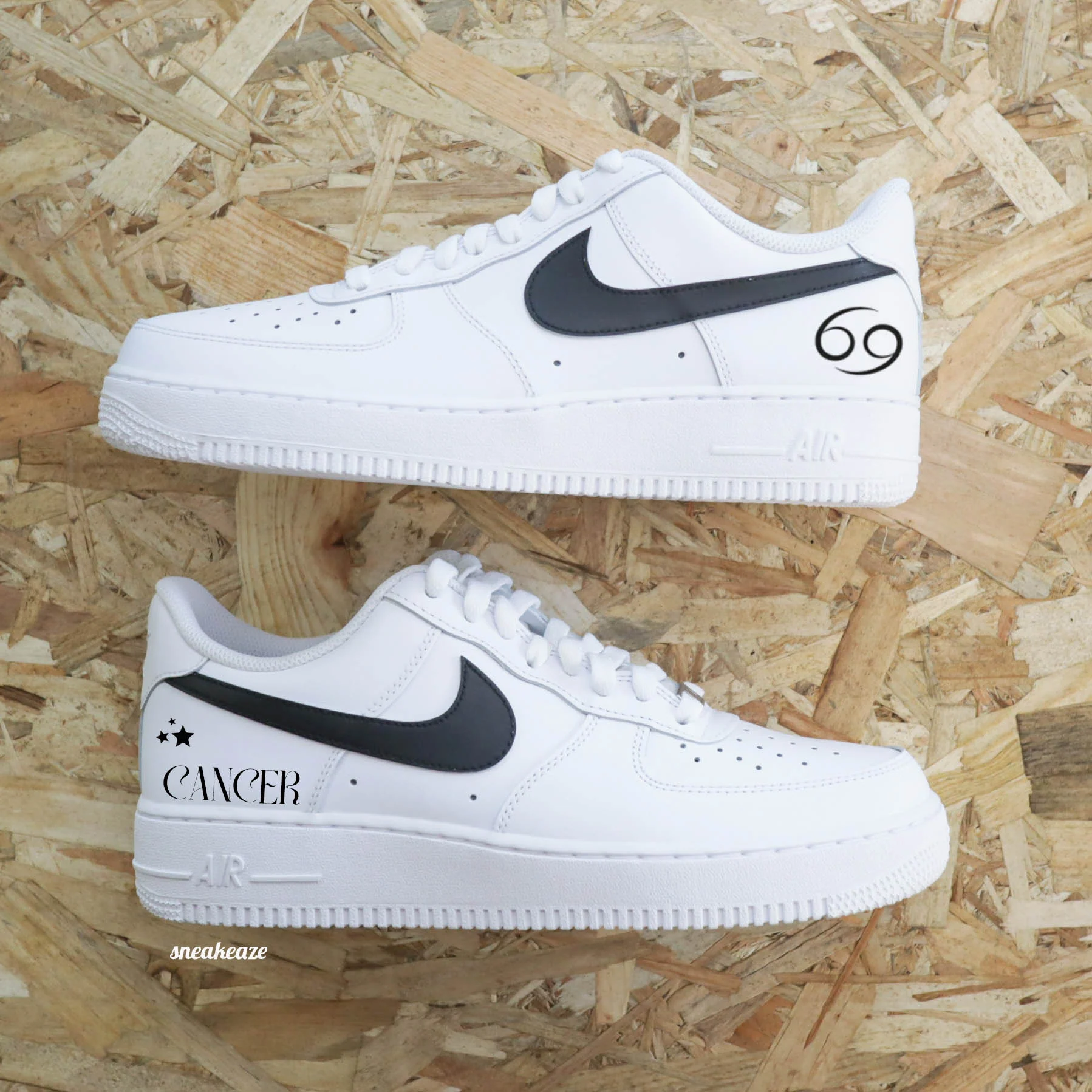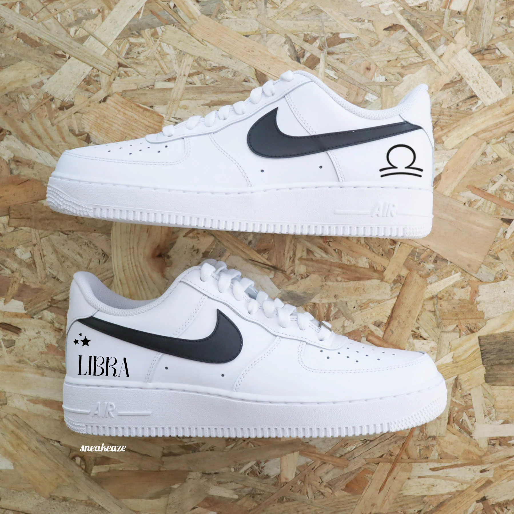 Basket Nike Air force 1 custom signe du zodiac, thème astrologie. Motifs sur côtés extérieurs. Je souhaite ajouter un prénom à mon custom