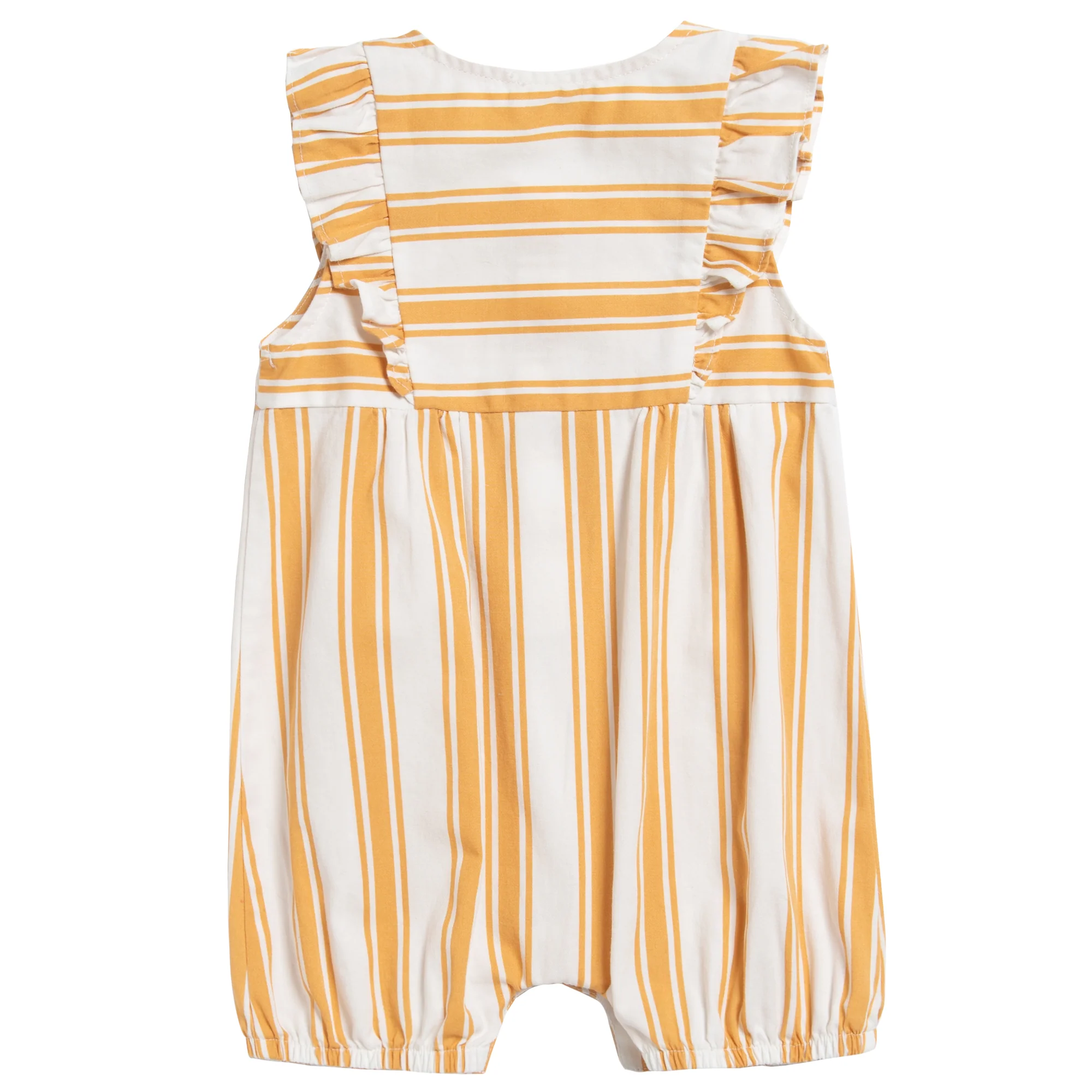 Parfaite pour une journée ensoleillée, cette barboteuse à rayures orange arbore un joli style rétro. La coupe droite et les jambes élastiques donnent à bébé la liberté de bouger pour explorer son environnement. La barboteuse présente des détails volantés et des boutons sur le devant pour faciliter les changements par la tête. La barboteuse est fabriquée dans un sergé léger, frais et respirant, et peut être portée toute la journée.