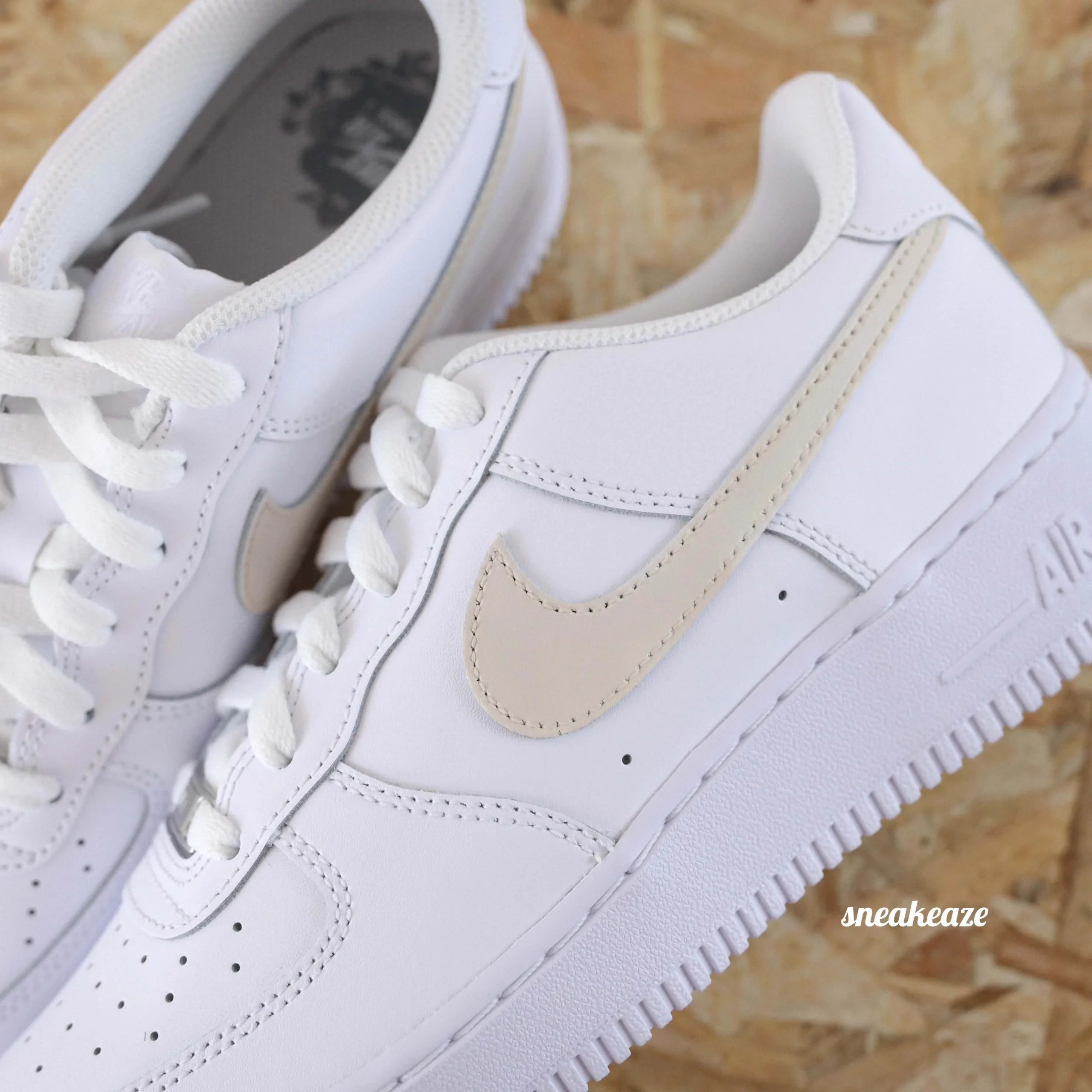 Baskets Nike Air Force 1 custom couleur beige clair. Je souhaite ajouter un prénom à mon custom