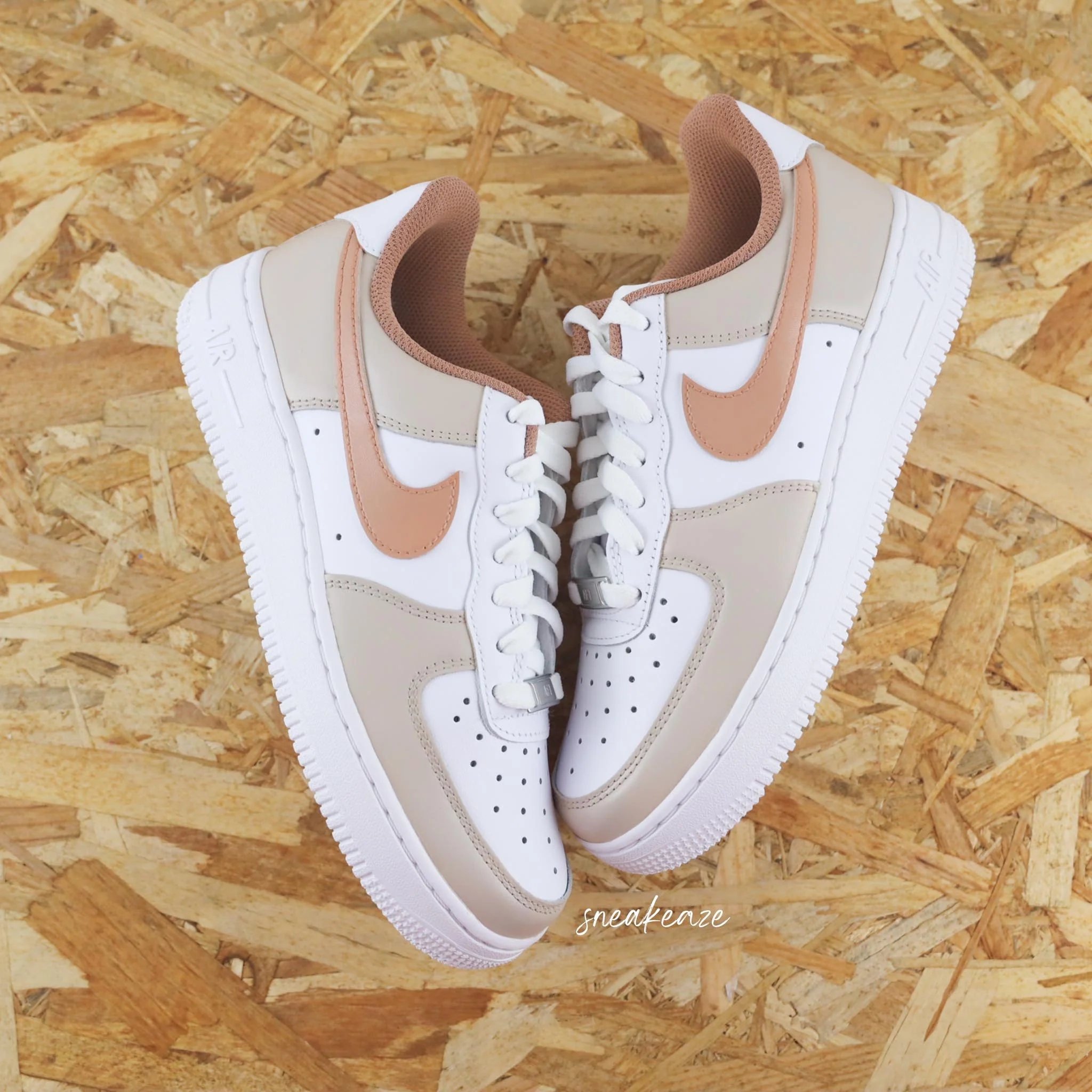 Baskets Nike Air Force 1 custom couleur beige clair et terracotta