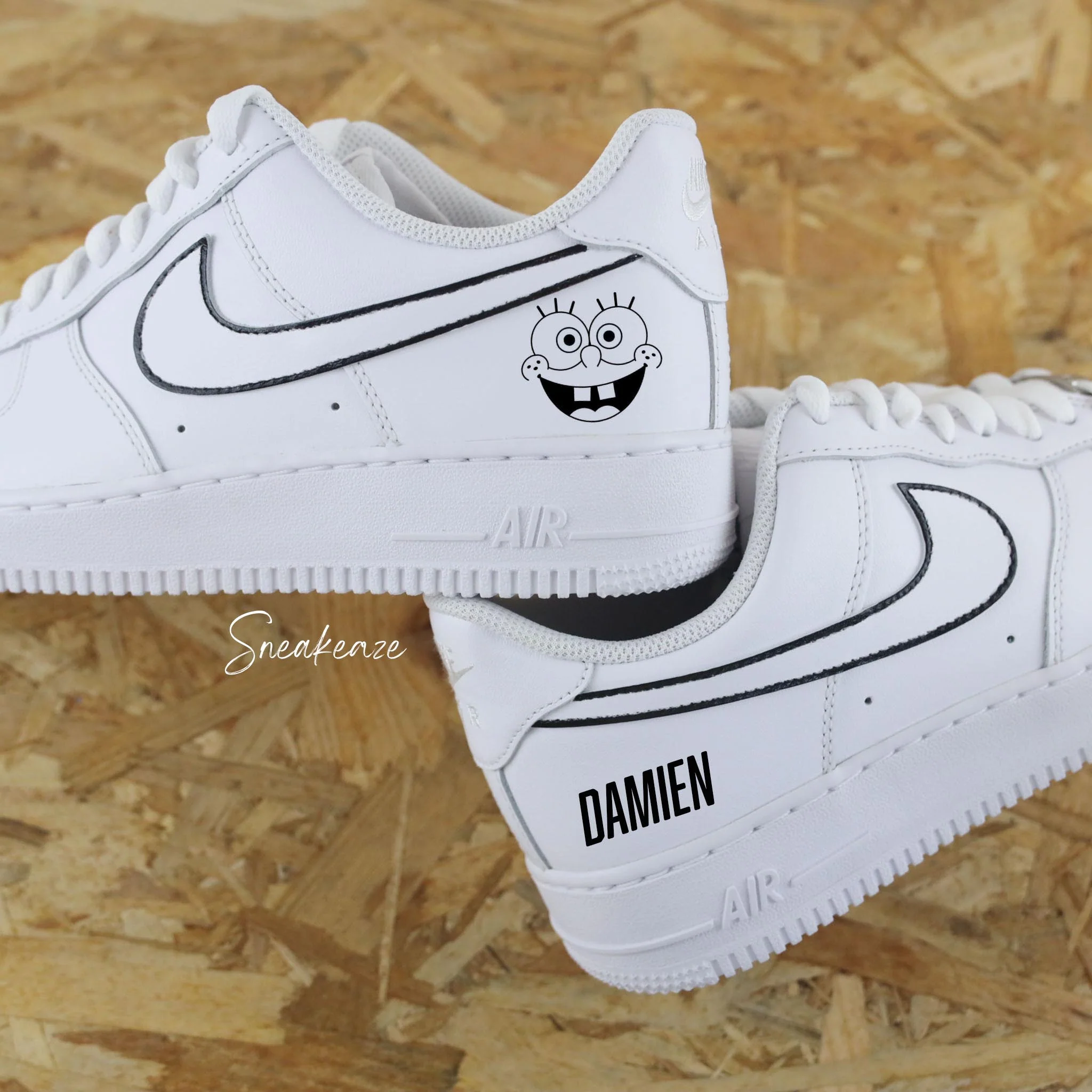 Baskets Nike Air Force 1 custom bob l’éponge et inscription du prénom. custom sur les côtés extérieurs