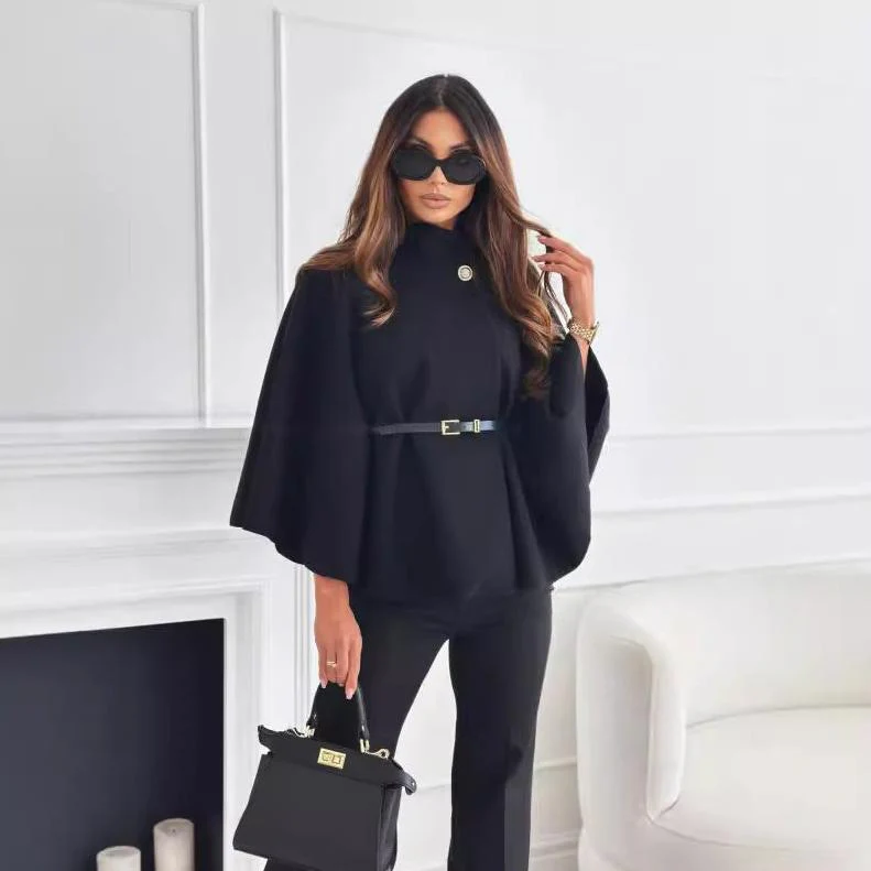 Ce Cape en Laine à Bretelles Serrées est la pièce parfaite pour compléter vos looks d’automne-hiver. Associez-le à des bottes et un pantalon ajusté pour un style chic et intemporel. Commandez dès maintenant pour sublimer vos tenues !
