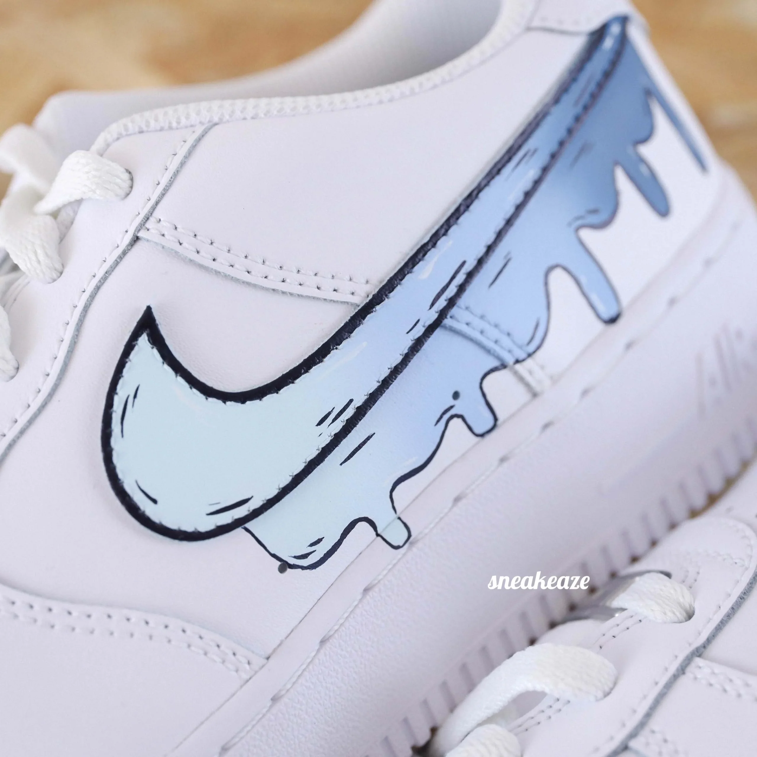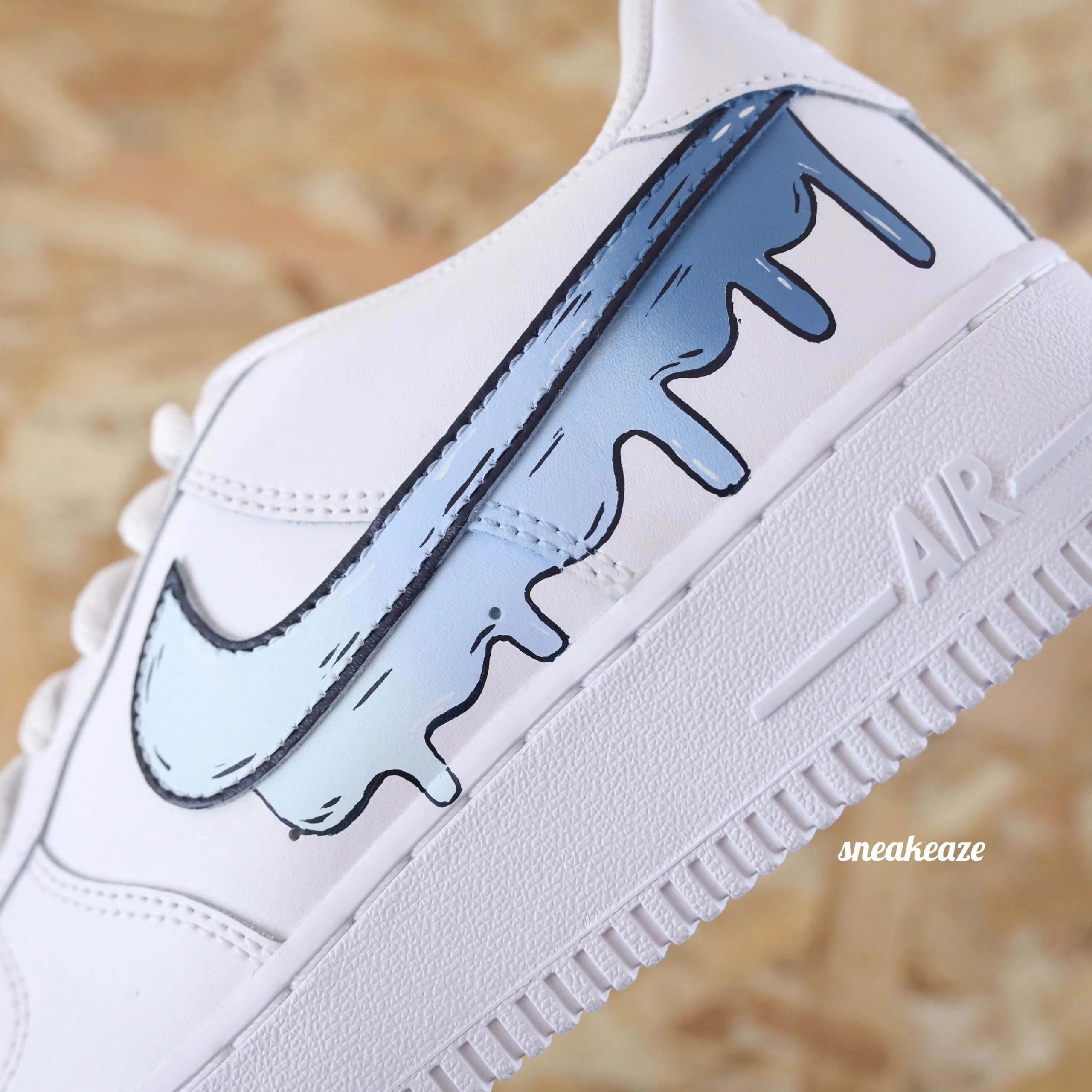 Baskets Nike Air force 1 custom modèle cartoon drip. Motifs sur côtés extérieurs. Je souhaite ajouter un prénom à mon custom Modèle fait-main dans notre atelier, peinture waterproof. Le tarif comprend la paire ainsi que la customisation.