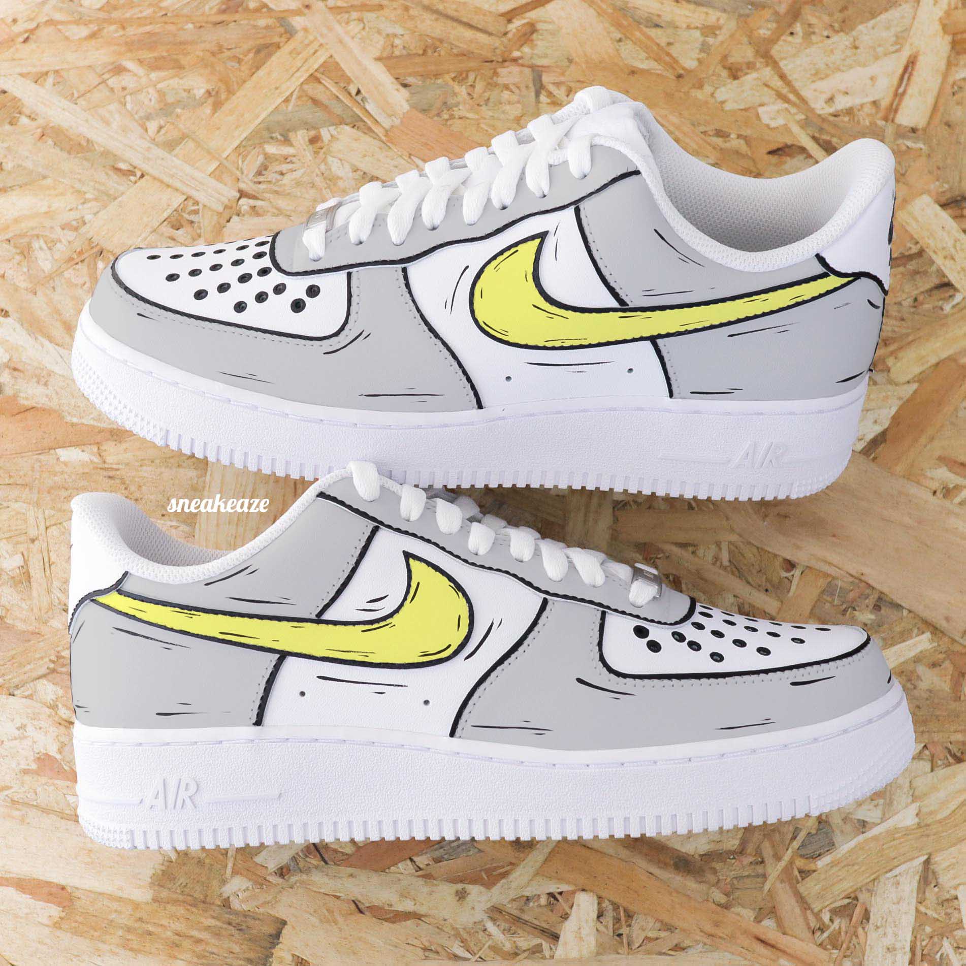 Baskets Nike Air Force 1 custom effet cartoon sketch Modèle fait-main dans notre atelier, peinture waterproof. Le tarif comprend la paire ainsi que la customisation.