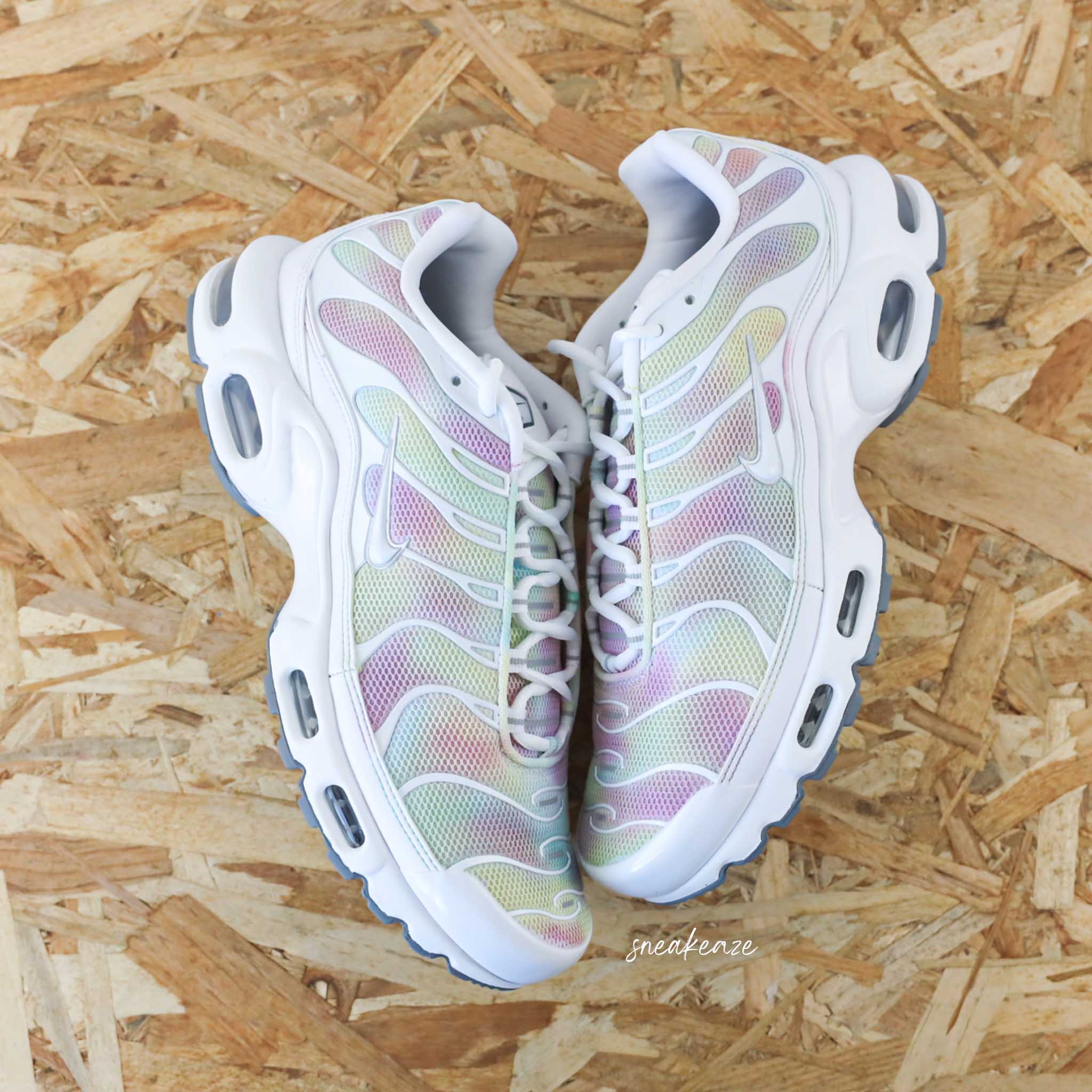Nike TN custom édition Dip Dye Cette paire est entièrement teinte à la main ce qui rend chaque exemplaire unique. De ce fait la couleur peut légèrement différer d’une paire à l’autre. Le tarif comprend la paire ainsi que la customisation. Modèle fait-main dans notre atelier, teinture waterproof.
