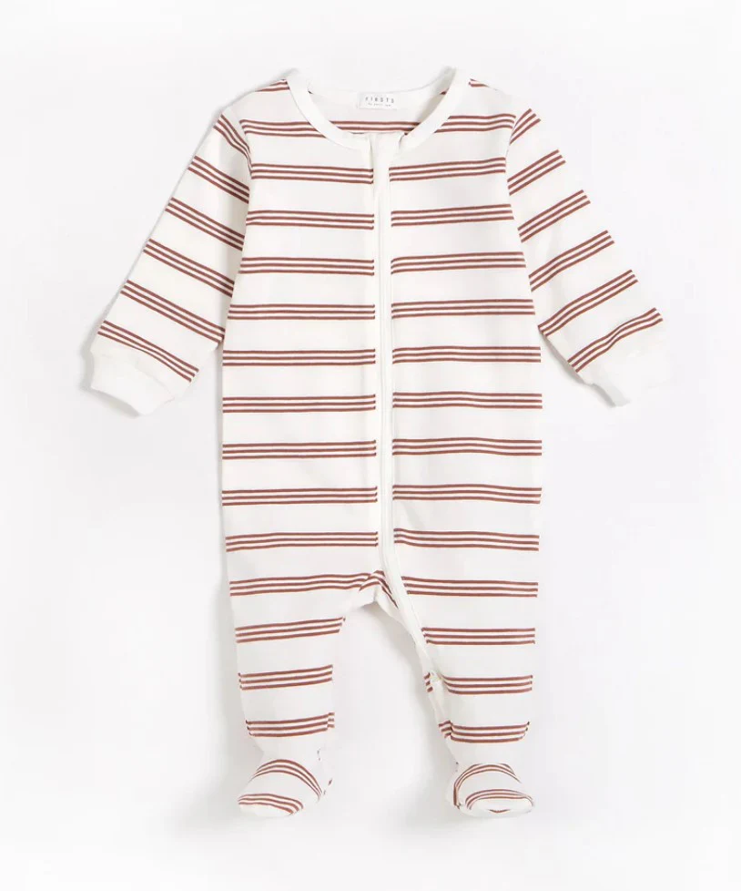 Cette dormeuse de style rétro présente notre motif à rayures « Red Rock » parfait pour une journée en poussette ou pour faire une petite sieste à la maison. Fabriquée en jersey de coton biologique, la dormeuse est incroyablement douce et légère sur la peau de bébé. Les pieds intégrés et les poignets élastiques rendent la dormeuse encore plus confortable et facile à porter. Une fermeture éclair sur toute la longueur de la dormeuse et le long de la jambe permet des changements rapides et faciles. Le protège-zip en tissu est conçu pour protéger le menton de bébé.