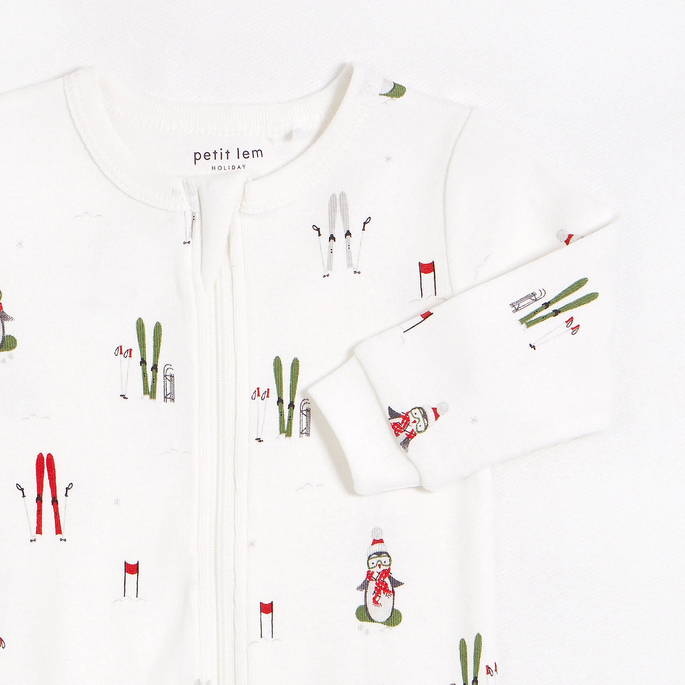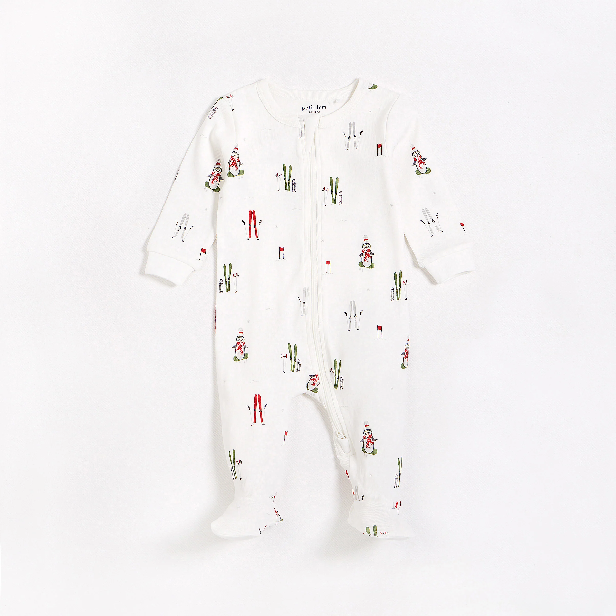 Dormeuse blanc cassé à imprimés de penguins au ski