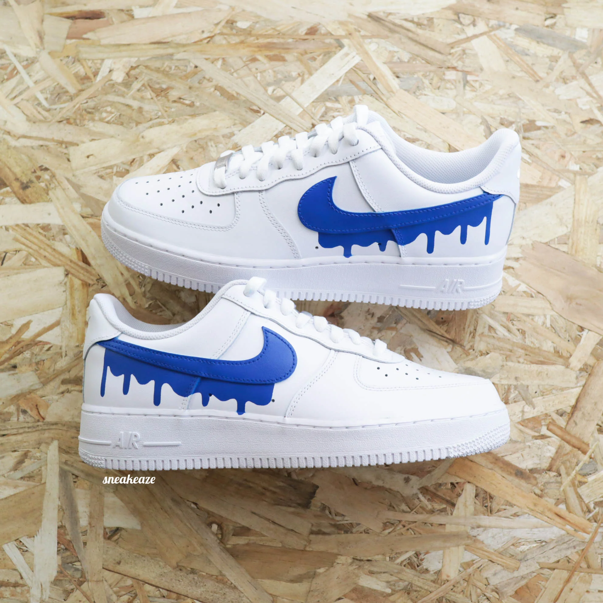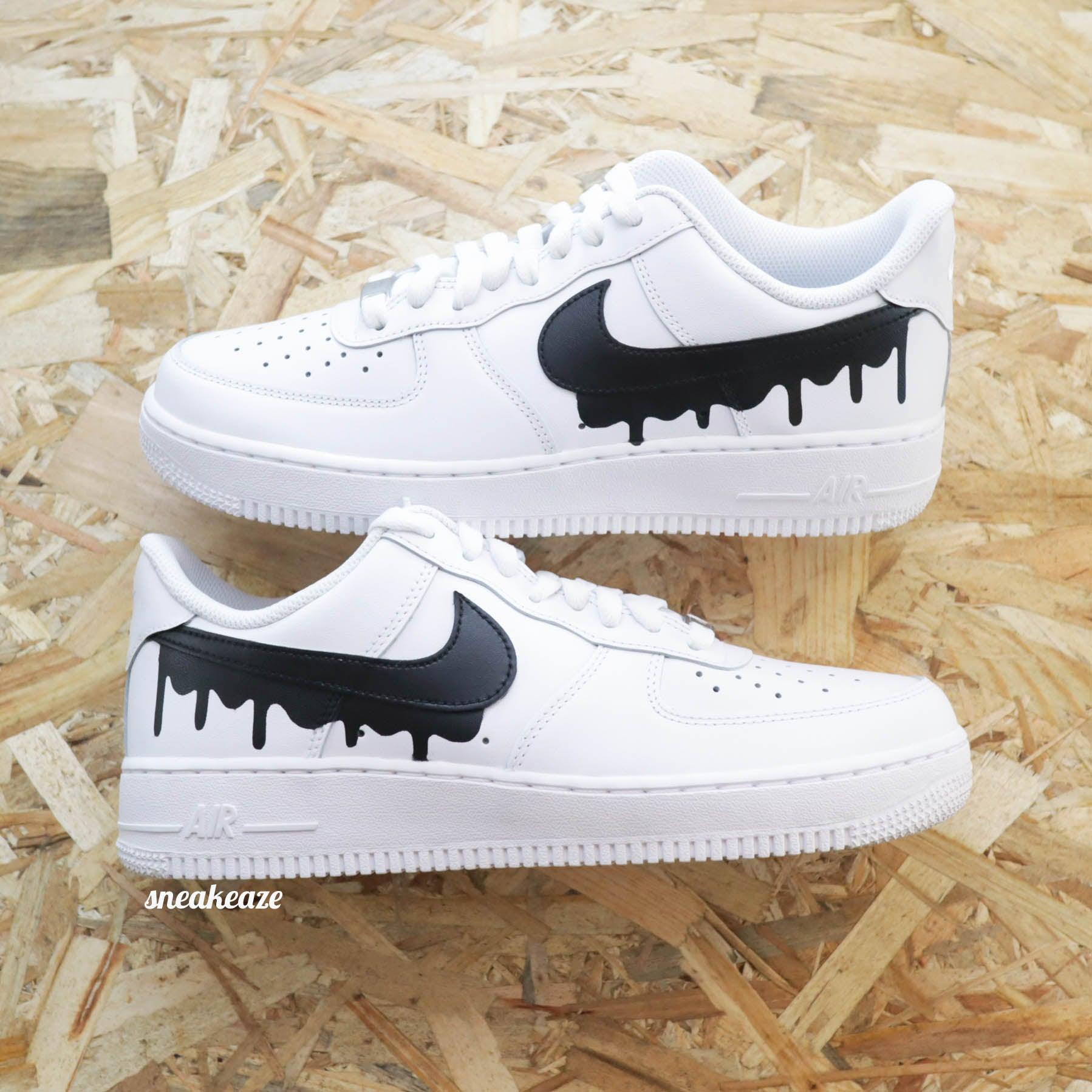 Baskets Nike Air force 1 custom modèle drip plusieurs couleurs disponibles. Motifs sur côtés extérieurs. swoosh intérieurs assortis.