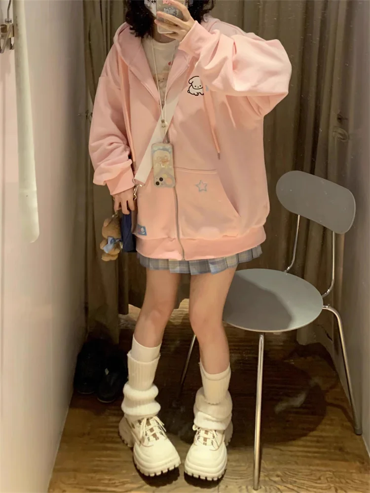 Ajoutez une touche de mignonnerie à votre garde-robe avec ce hoodie Kawaii Harajuku inspiré du style Y2K japonais. Ce sweat à capuche doux et confortable est conçu pour les jeunes femmes à la recherche d’un look girly et décontracté. Avec son tissu en coton et polyester de haute qualité, il offre une légère élasticité pour un ajustement parfait tout en restant agréable à porter tout au long de l’année. Orné de broderies délicates et d’un motif anime adorable, ce sweat est idéal pour les fans de mode kawaii et Harajuku. Sa coupe loose et sa fermeture éclair complète le style pratique et moderne.