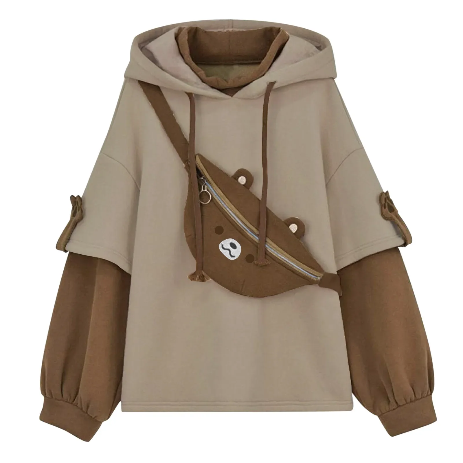 Plongez dans l’univers kawaii avec ce hoodie oversize doté d’un sac en forme d’ours adorable. Ce sweatshirt patchwork est parfait pour l’automne et l’hiver, alliant confort et style avec une touche de streetwear japonais.