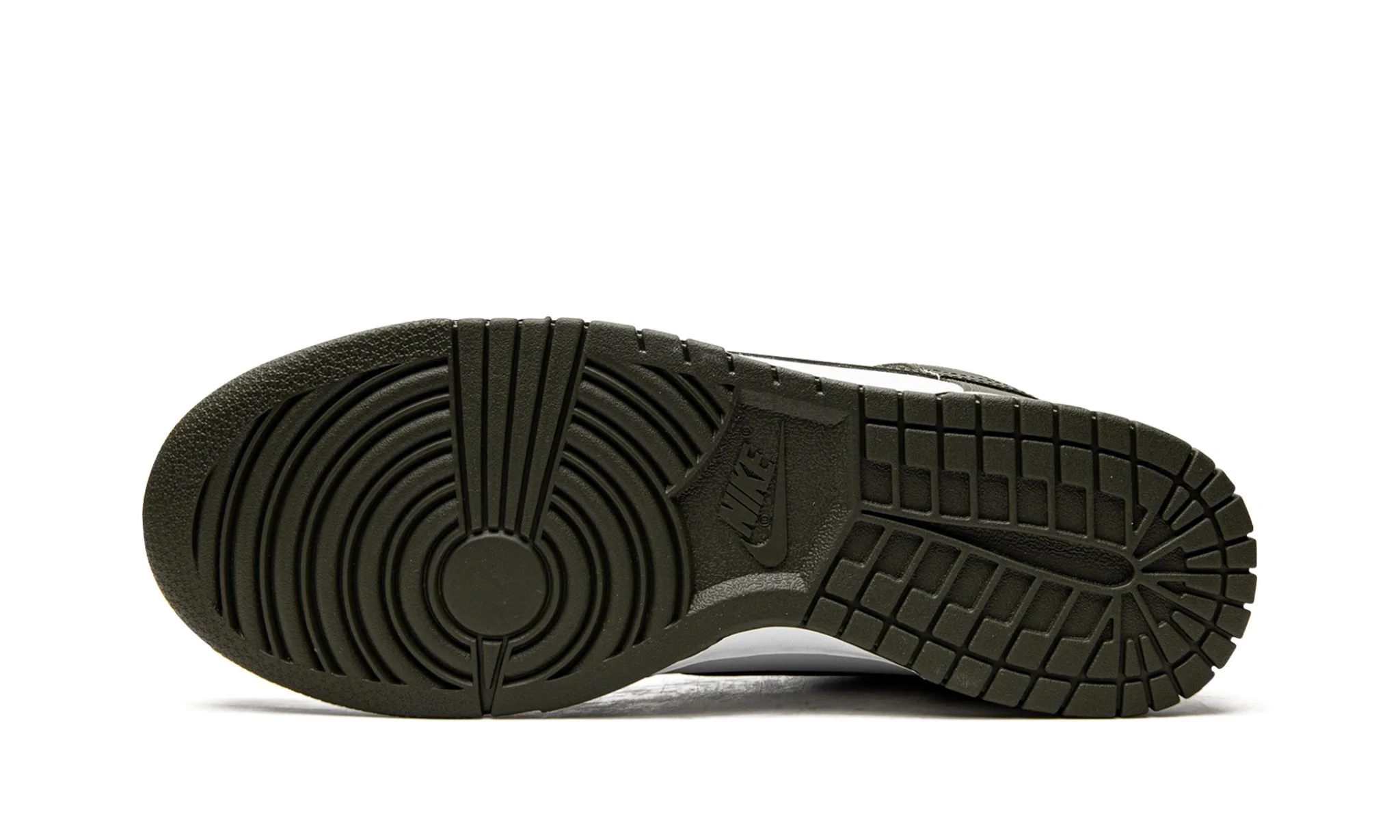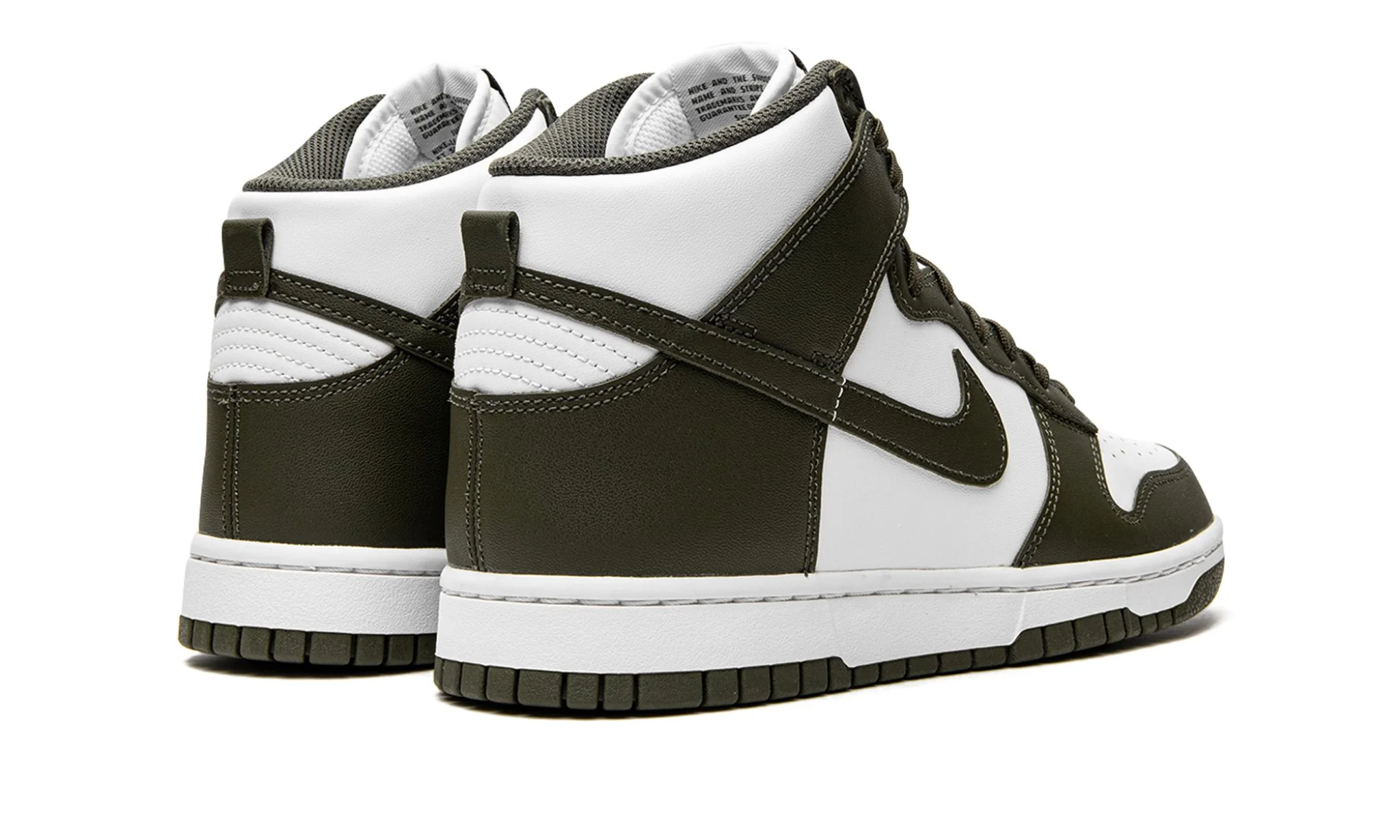 La Nike Dunk High « Cargo Khaki » est une version revisitée de la célèbre silhouette Dunk High de Nike, initialement conçue pour le basketball universitaire dans les années 1980. Cette édition présente une combinaison de couleurs classique avec une tige en cuir blanc contrastée par des superpositions en cuir vert olive, également appelé « Cargo Khaki ». Les lacets et le Swoosh latéral arborent également cette teinte verte, offrant un look épuré et polyvalent.