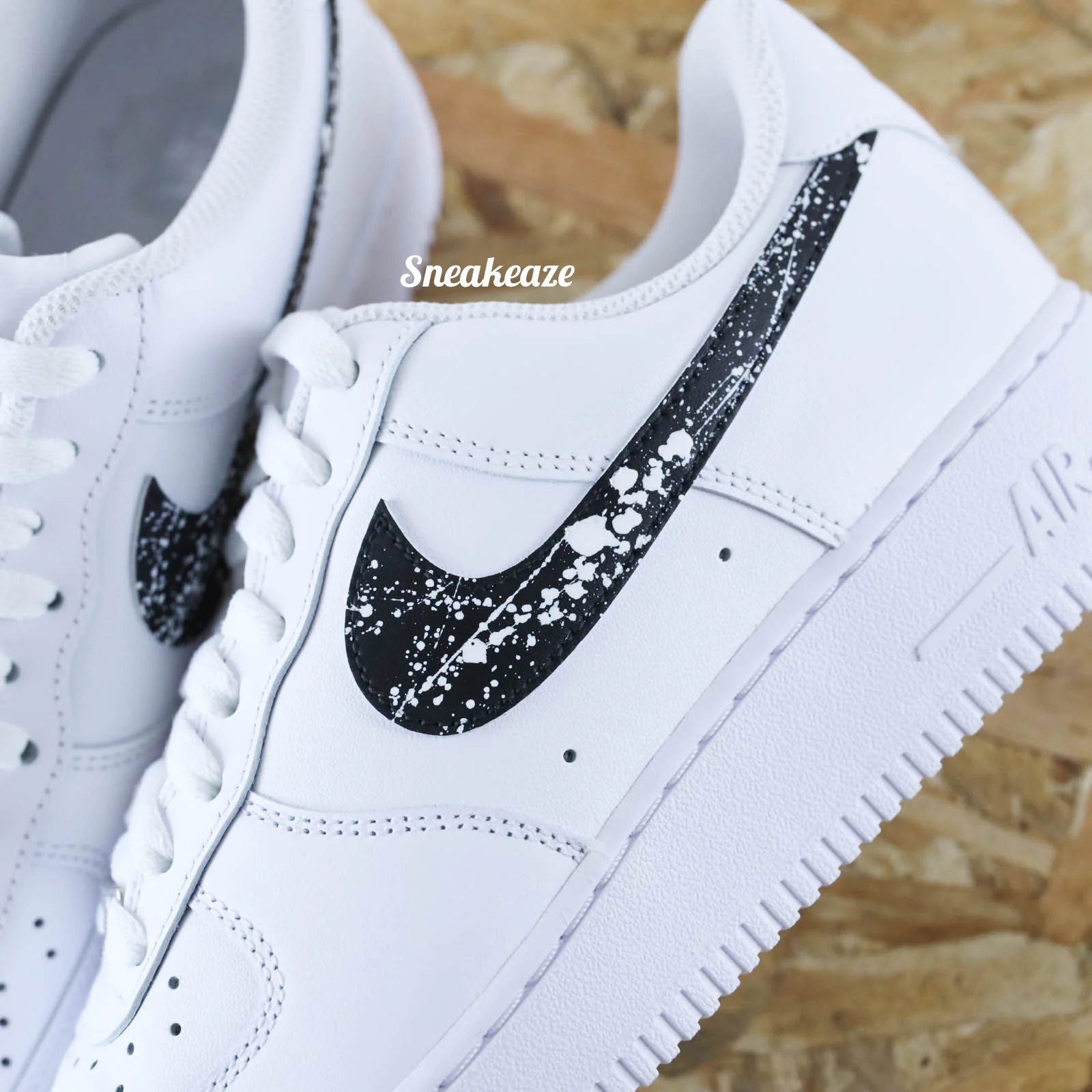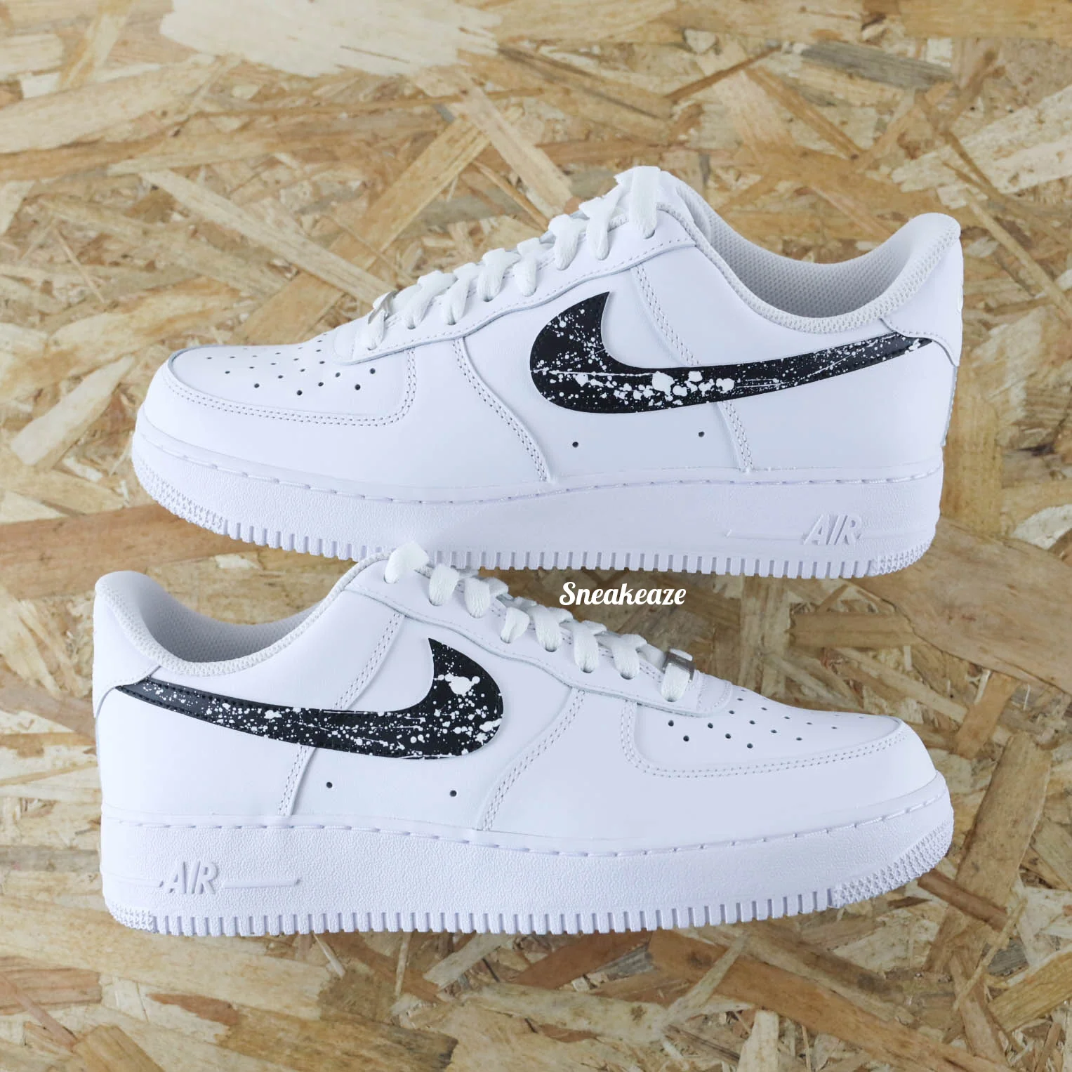 Baskets Nike Air force 1 custom – swoosh oreo. Je souhaite ajouter un prénom à mon custom Modèle fait-main dans notre atelier, peinture waterproof. Le tarif comprend la paire ainsi que la customisation.