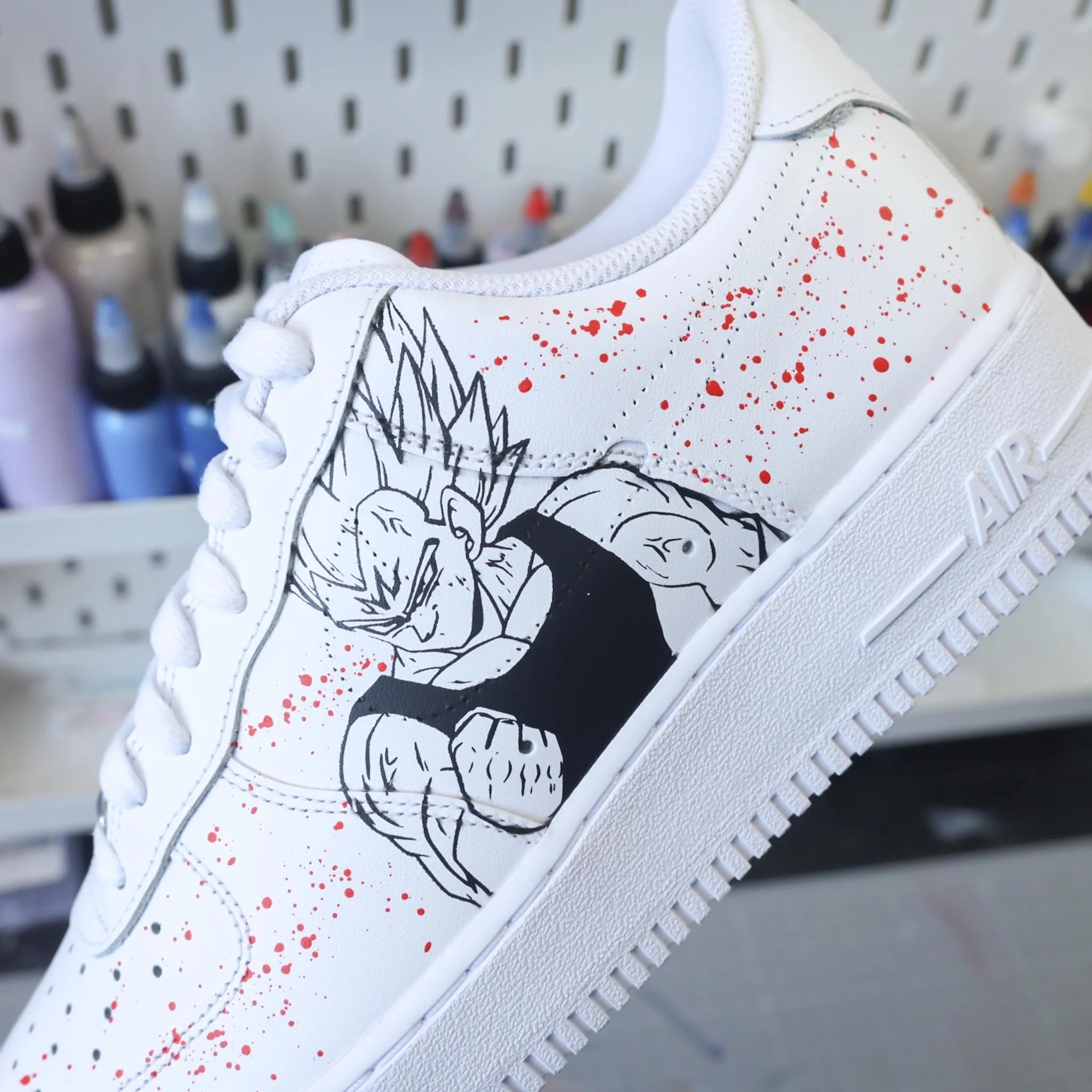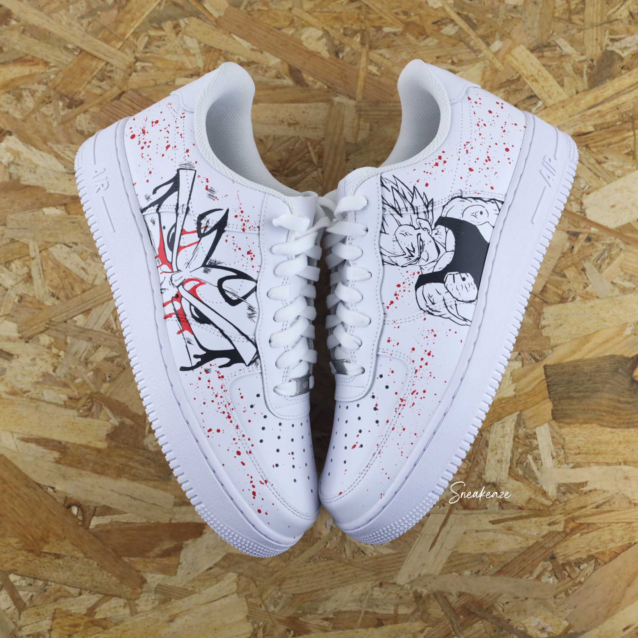 Baskets Nike Air force 1 custom dessin Dragon Ball Z vegeta sur côtés extérieurs. Je souhaite ajouter un prénom à mon custom