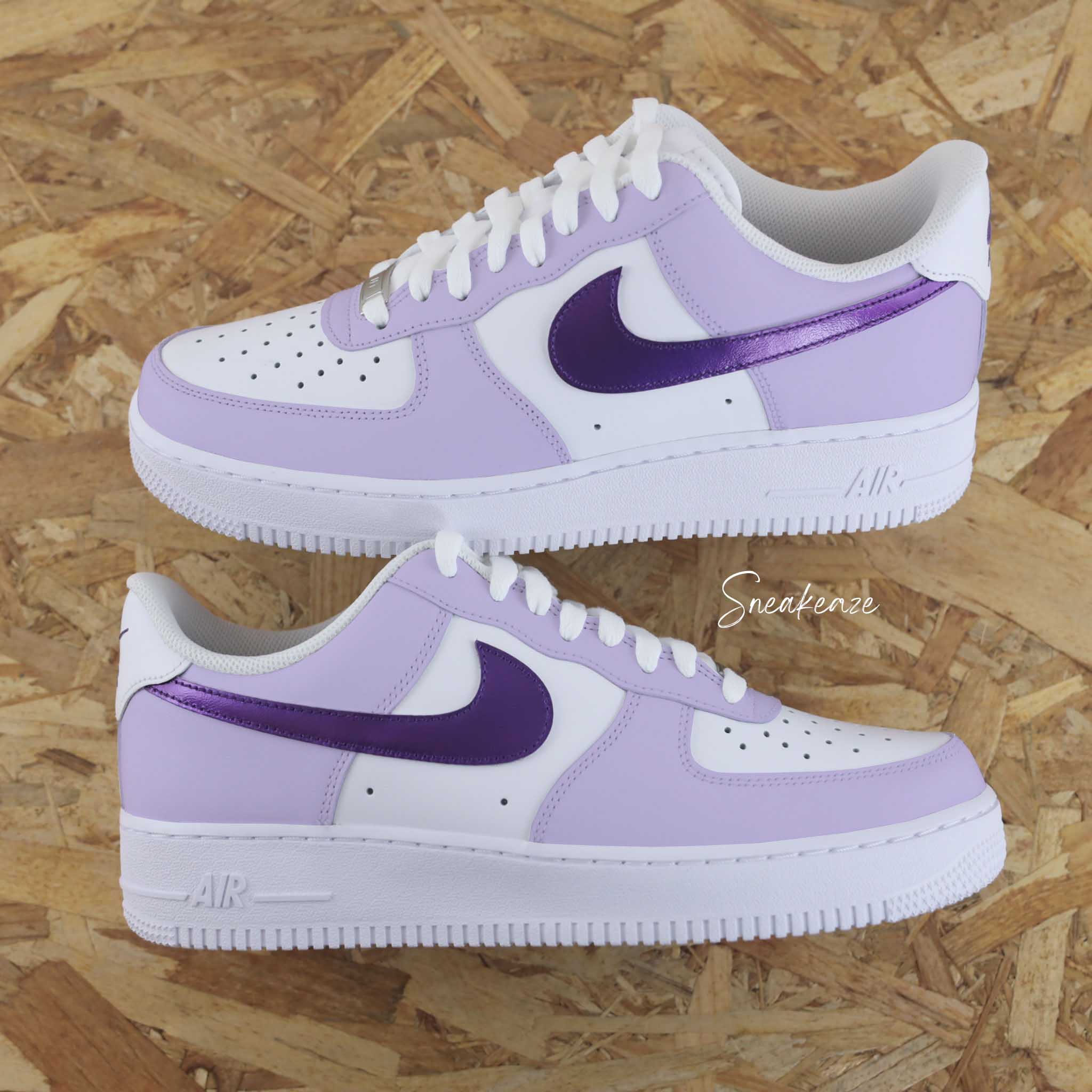 Baskets Nike Air Force 1 custom violet métallisé et couleur lavande pastel